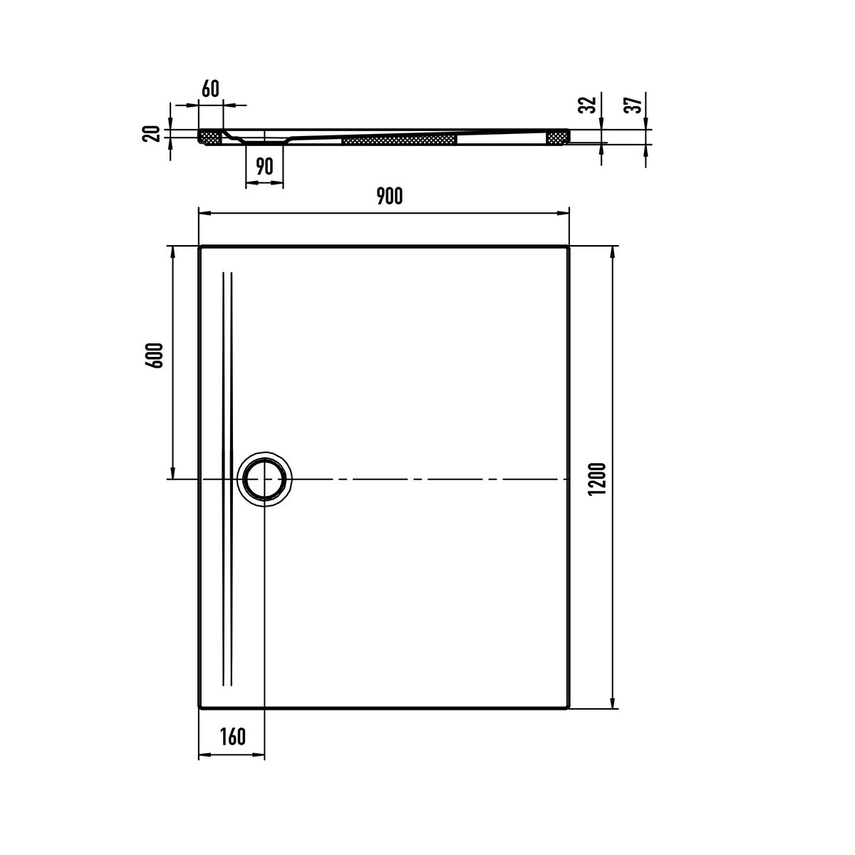 - altezza totale del piatto doccia con supporto - 3,7 cm