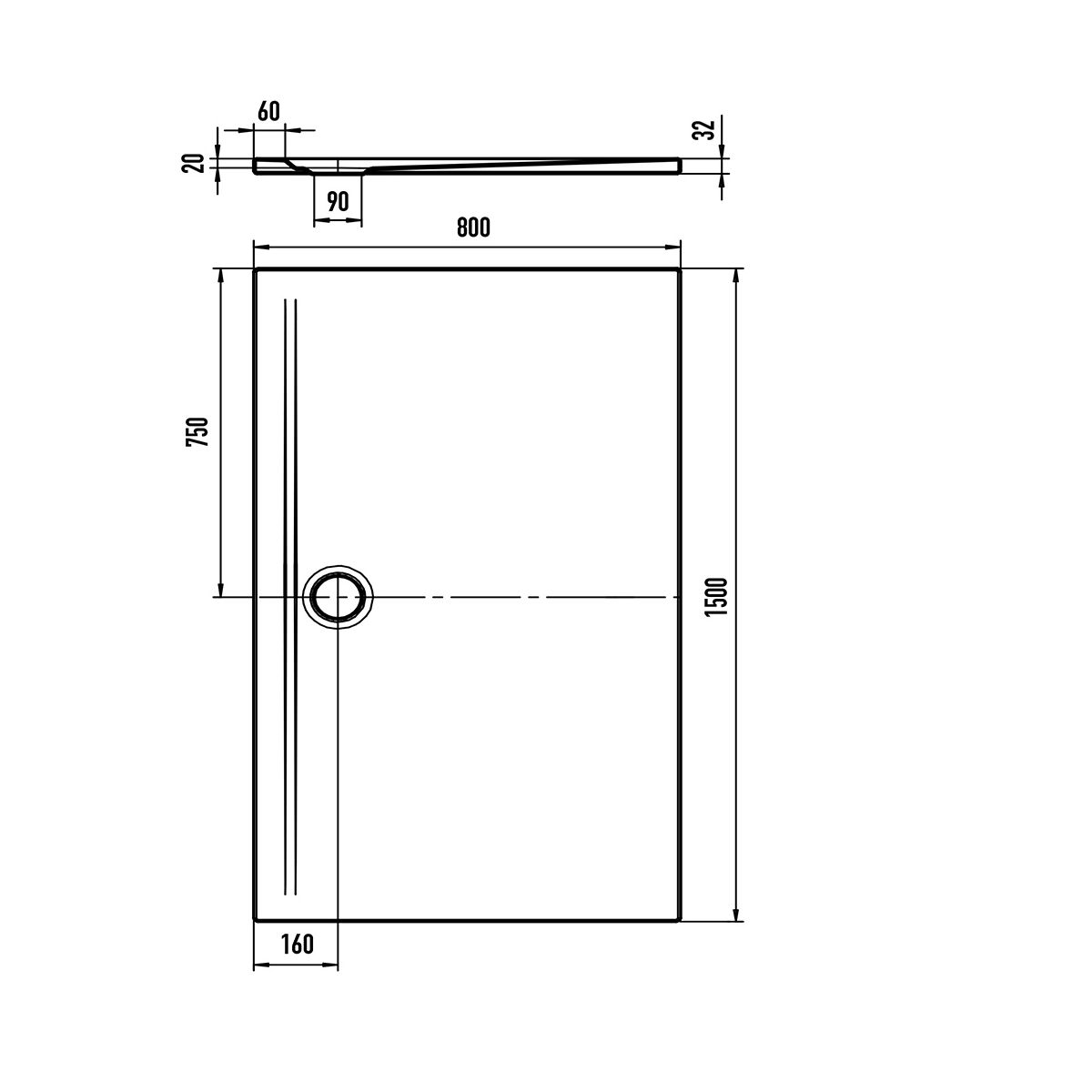 Piatto doccia piatto dal design molto moderno, con lo scarico situato al centro del lato lungo. Area di appoggio spaziosa e omogenea. Può essere abbinato a un coperchio di scarico cromato o a un coperchio di scarico smaltato nel colore del piatto doccia (venduto separatamente).