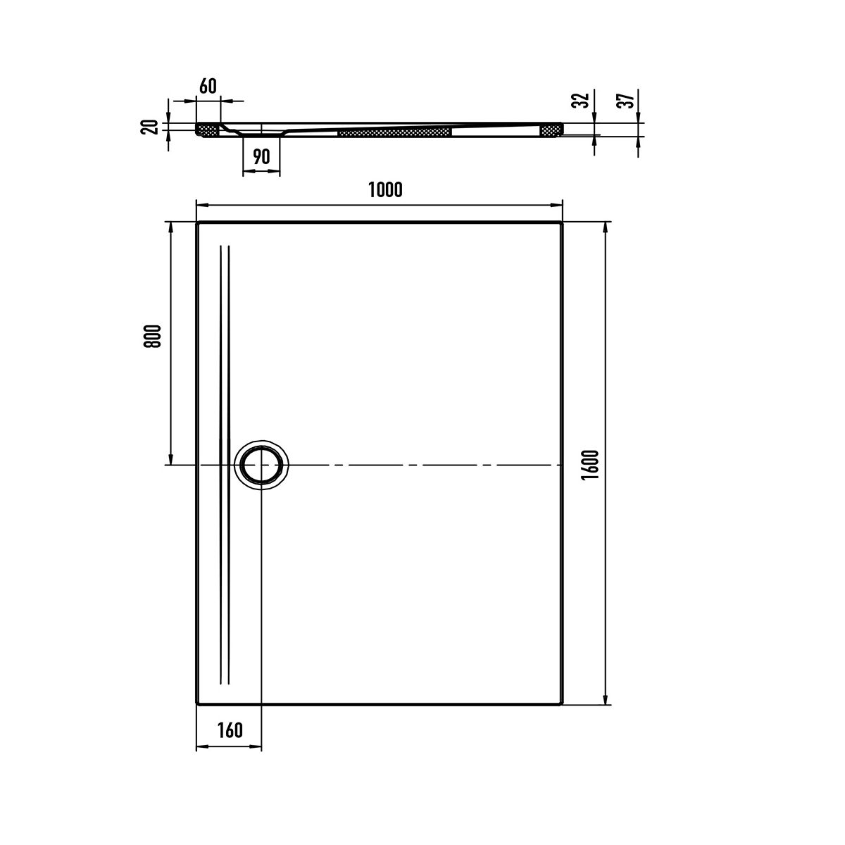 - altezza totale del piatto doccia con supporto - 3,7 cm