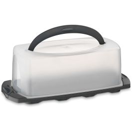Il contenitore grigio scuro è dotato di coperchio rimovibile e di maniglie per un facile trasporto.