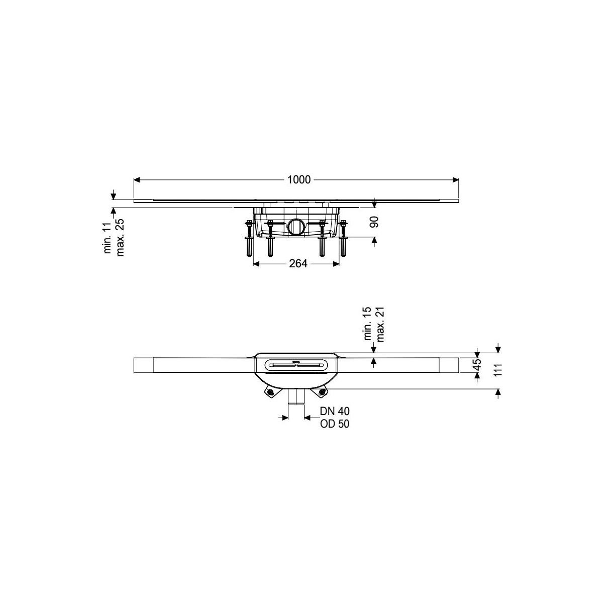 La piletta sottile Linearis Infinity da installare a filo pavimento è adatta per il drenaggio lineare in interni domestici e industriali. Il profilo di scarico in acciaio inox 1.4404 (V4A) può essere esteso in modo diritto o con tre elementi angolari (30°, 45° e 90°). Il corpo in PP è dotato di isolatori di rumore e vibrazioni (perni). Lo scarico è dotato di una flangia a scatto con tappetino impermeabilizzante montato in fabbrica, in conformità alle norme EN 1253-1 e DIN 18534-1-W3-I. Il profilo dello scarico può essere sfalsato nella flangia a scatto in senso longitudinale e trasversale per compensare le tolleranze dell'edificio. Con sifone da 50 mm. L'apertura di scarico aperta per l'acqua di infiltrazione impedisce l'allagamento della superficie di tenuta a causa del traboccamento.