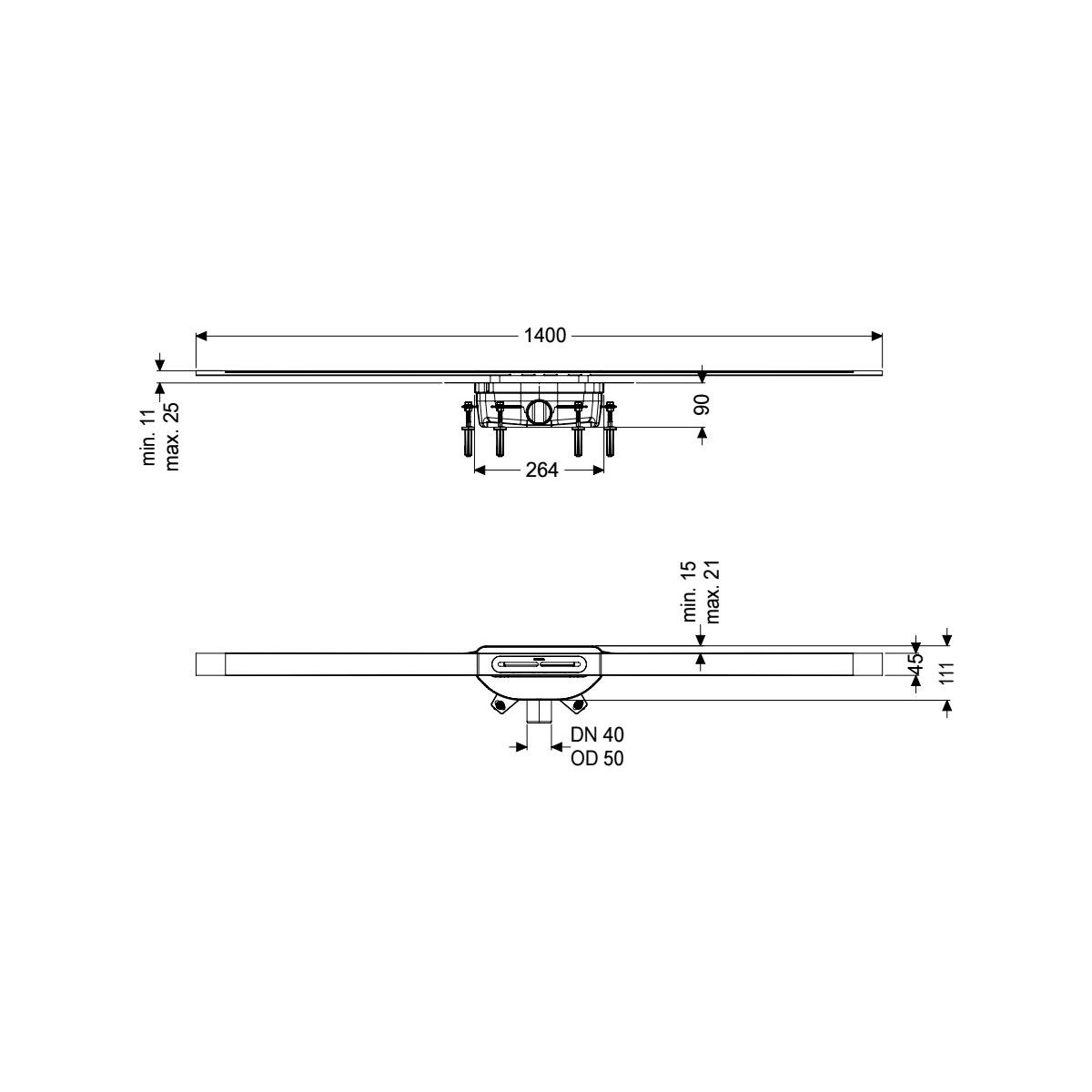 Kessel Linearis Infinity scarico per doccia 140 cm acciaio 45200.14