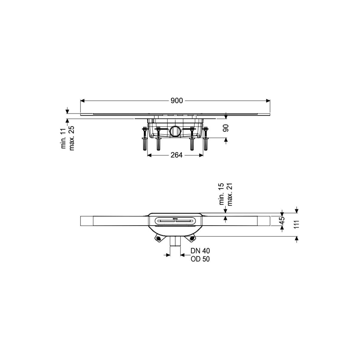 La piletta sottile Linearis Infinity da installare a filo pavimento è adatta per il drenaggio lineare in interni domestici e industriali. Il profilo di scarico in acciaio inox 1.4404 (V4A) può essere esteso in modo diritto o con tre elementi angolari (30°, 45° e 90°). Il corpo in PP è dotato di isolatori di rumore e vibrazioni (perni). Lo scarico è dotato di una flangia a scatto con tappetino impermeabilizzante montato in fabbrica, in conformità alle norme EN 1253-1 e DIN 18534-1-W3-I. Il profilo dello scarico può essere sfalsato nella flangia a scatto in senso longitudinale e trasversale per compensare le tolleranze dell'edificio. Con sifone da 50 mm. L'apertura di scarico aperta per l'acqua di infiltrazione impedisce l'allagamento della superficie di tenuta a causa del traboccamento.
