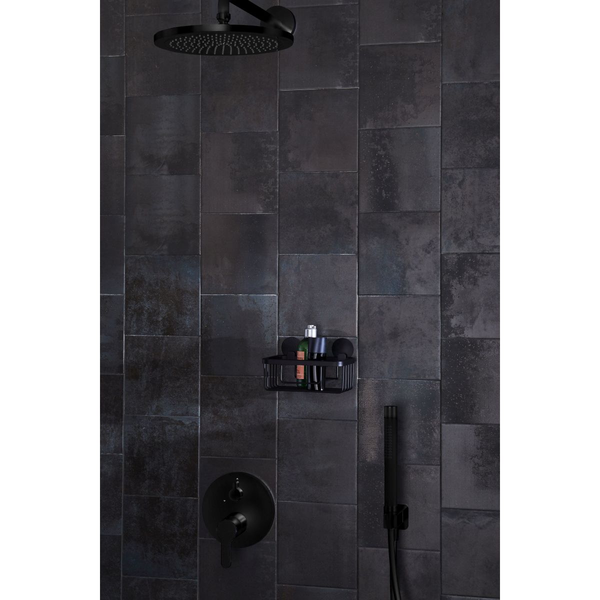 Cestino da doccia rettangolare resistente e robusto per gli accessori da bagno e i cosmetici da lavare della gamma Rocco, da fissare alla parete con un robusto nastro di montaggio.