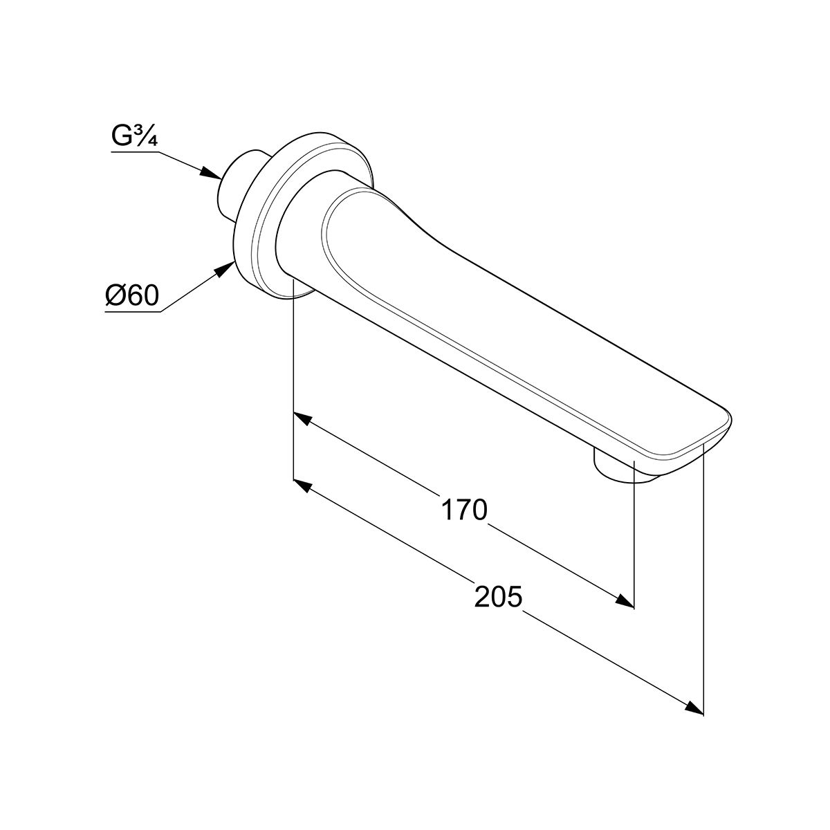 -portata della bocca di erogazione 170 mm