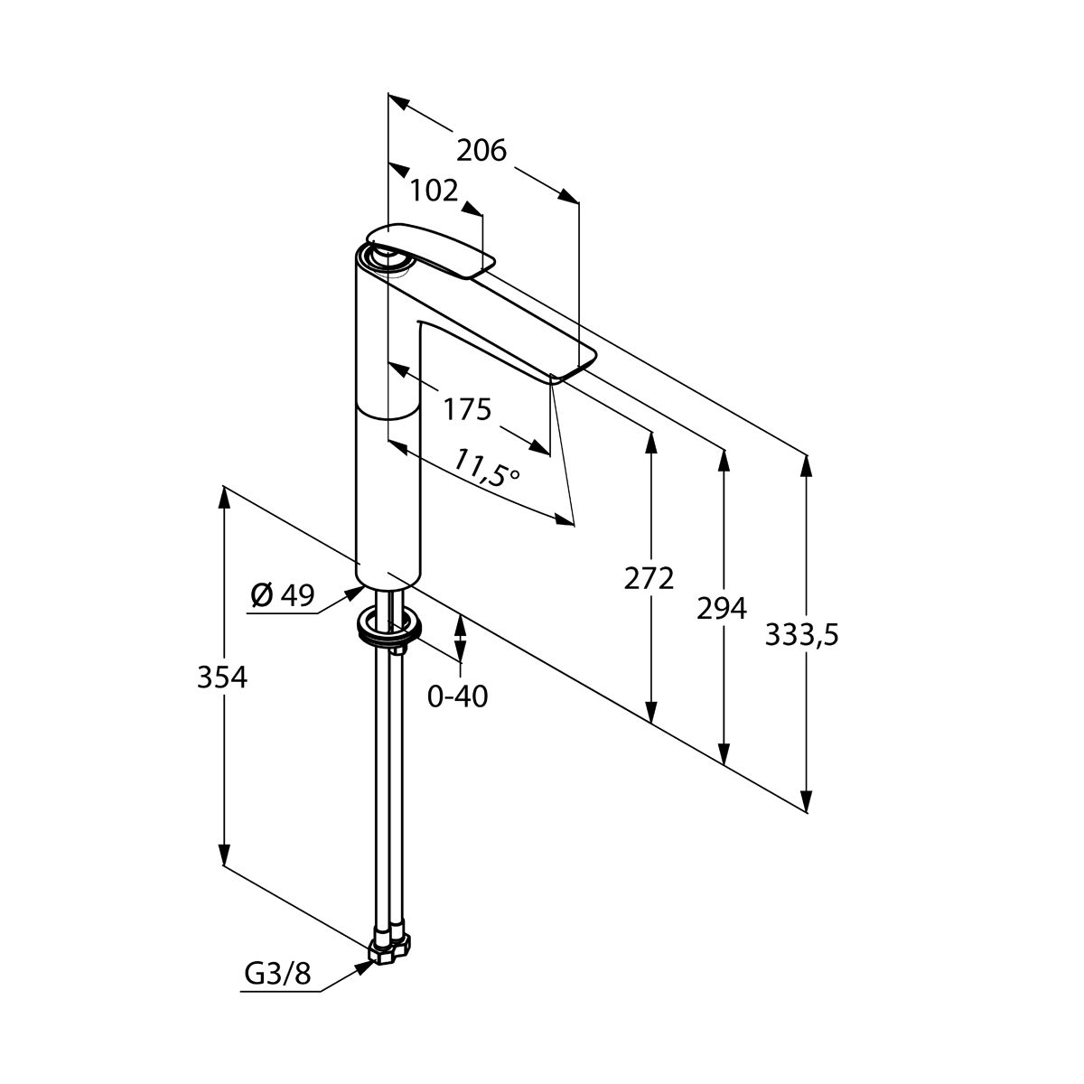 -altezza della bocca di erogazione 272 mm