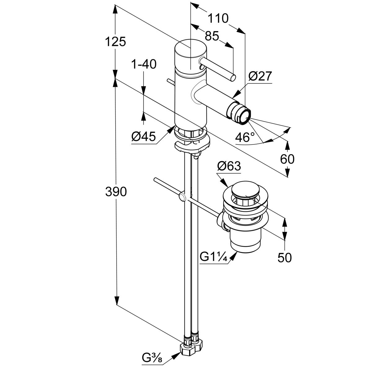 - miscelatore monocomando per bidet DN 15