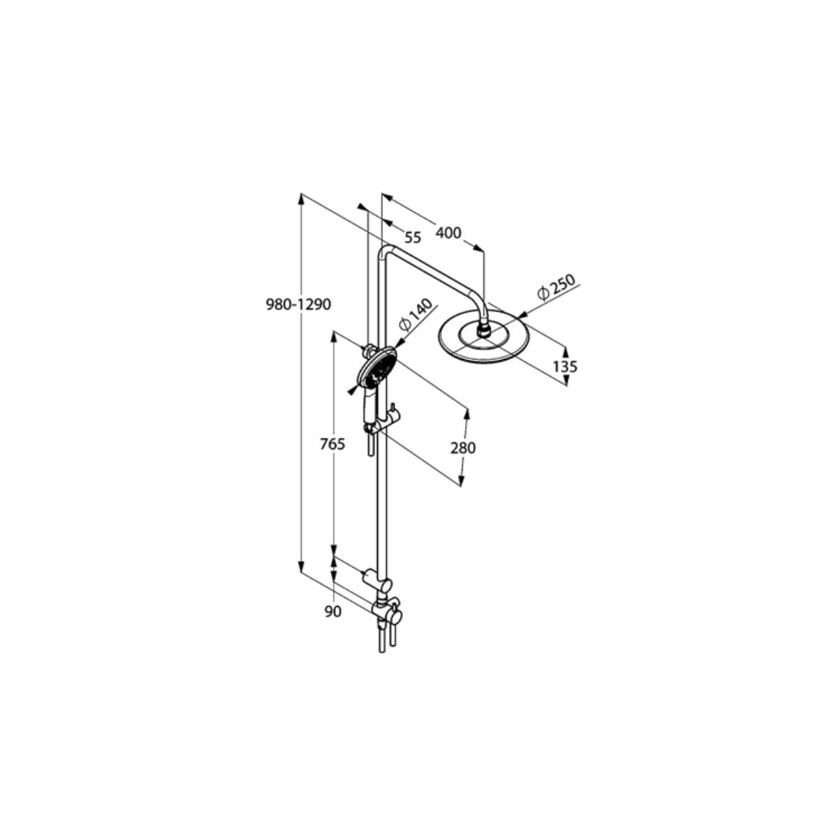 - Comprende: soffione doccia, doccetta, flessibile doccia, asta doccia, prese d'acqua