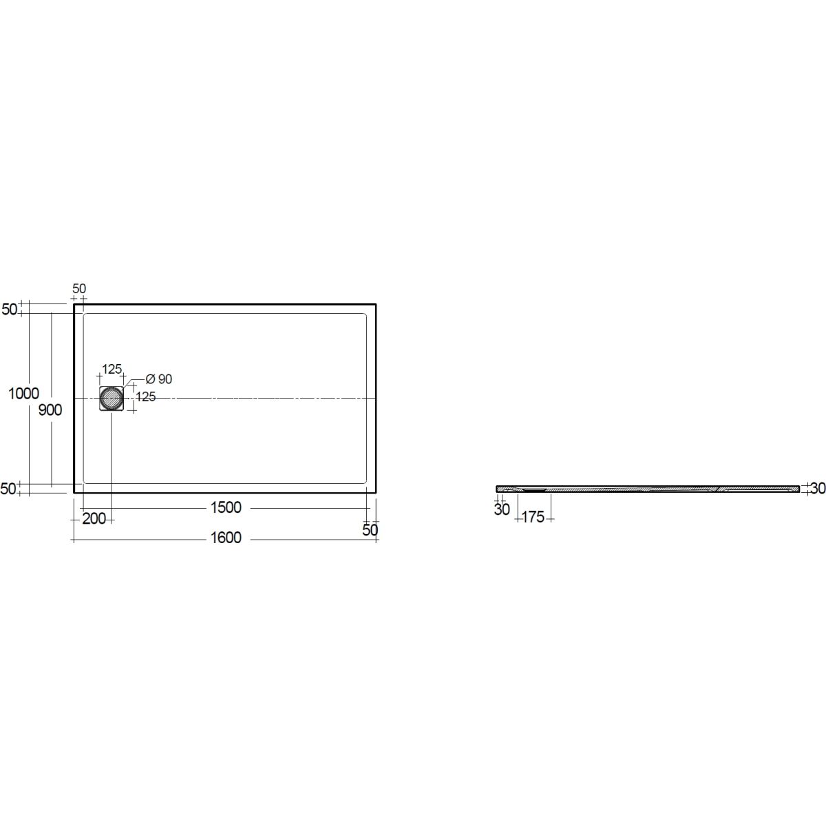 - scarico posizionato centralmente lungo il lato più corto Ø 9 cm