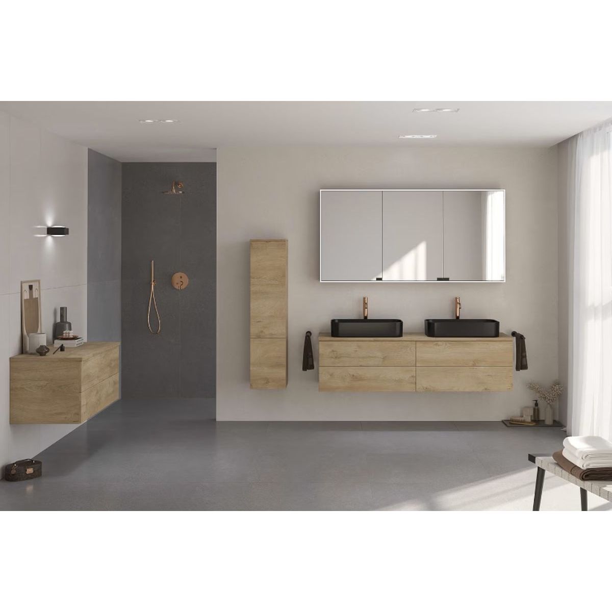 Mobile sottolavabo Kronenbach Cube 141 cm con 4 cassetti, con piano in rovere chiaro