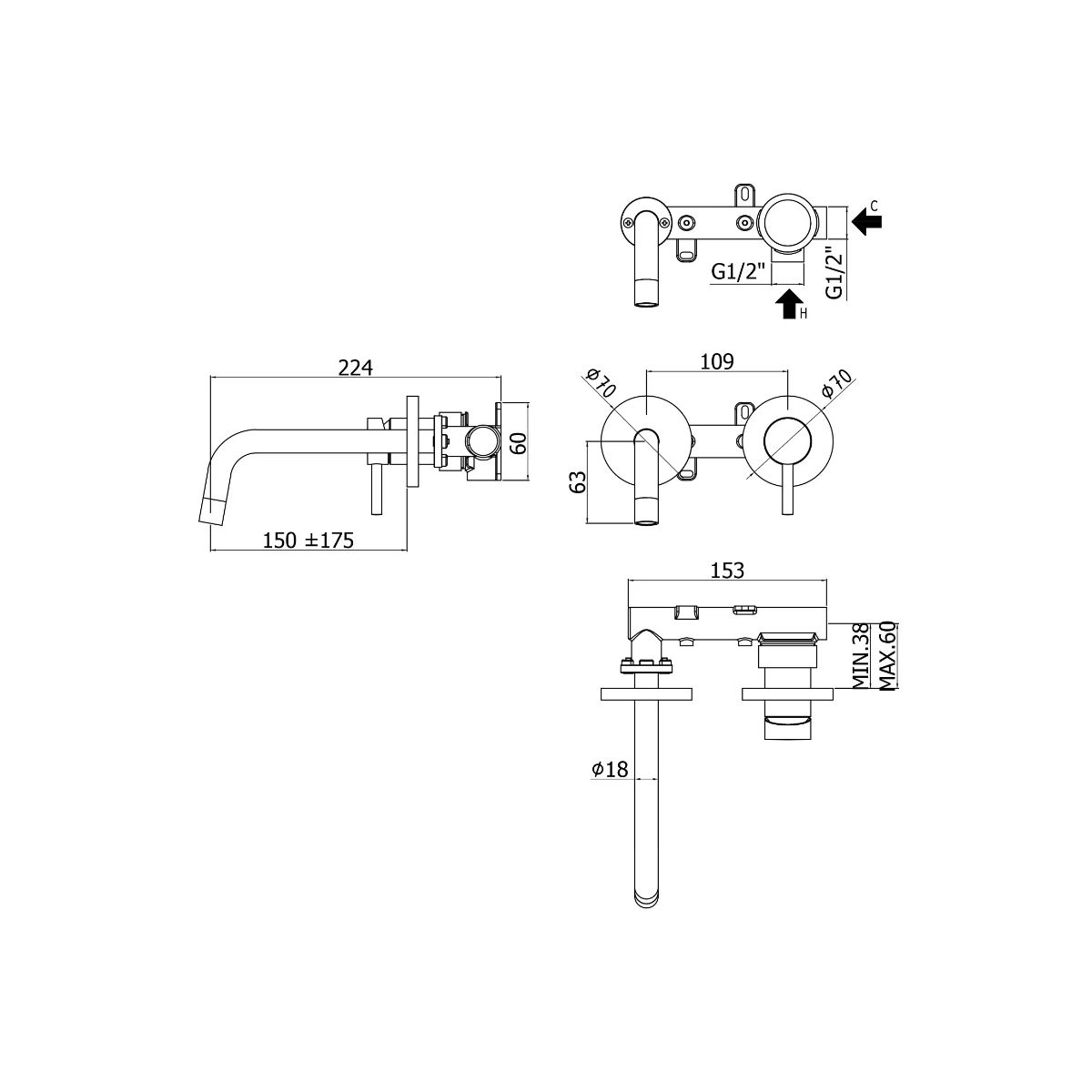 Kronenbach Lima 2.0 Black rubinetto per lavabo da incasso nero 100.1814SMKBN