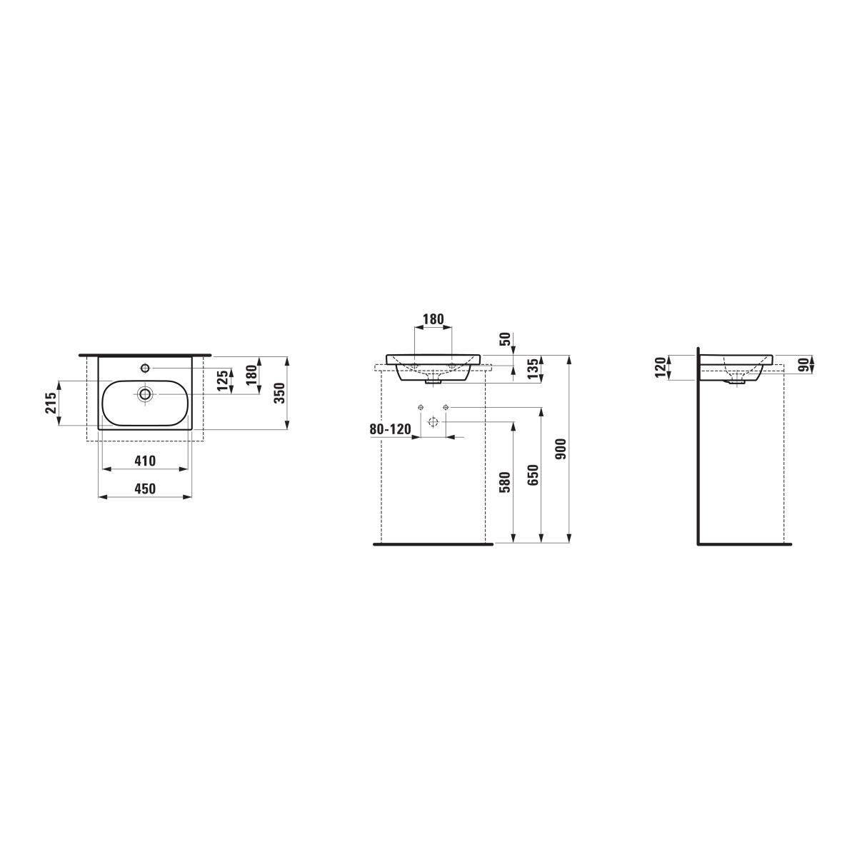 Laufen Lua lavabo 45x35 cm rettangolare a parete bianco H8160800001091