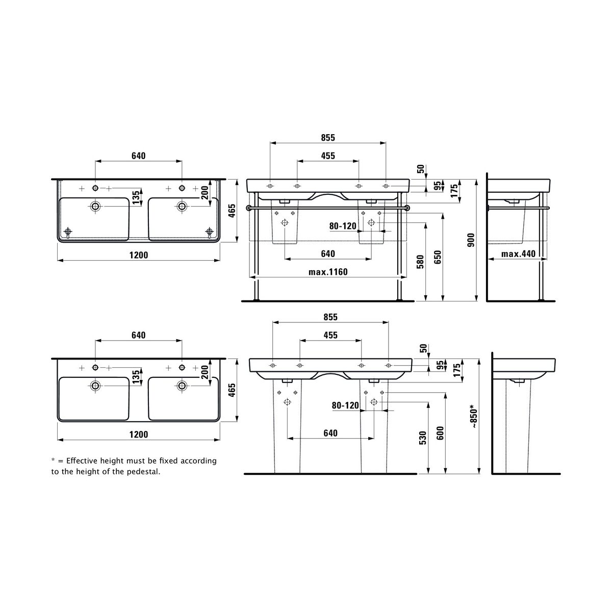 Laufen Pro S lavabo 120x46 cm rettangolare a parete-doppio bianco H8149660001041