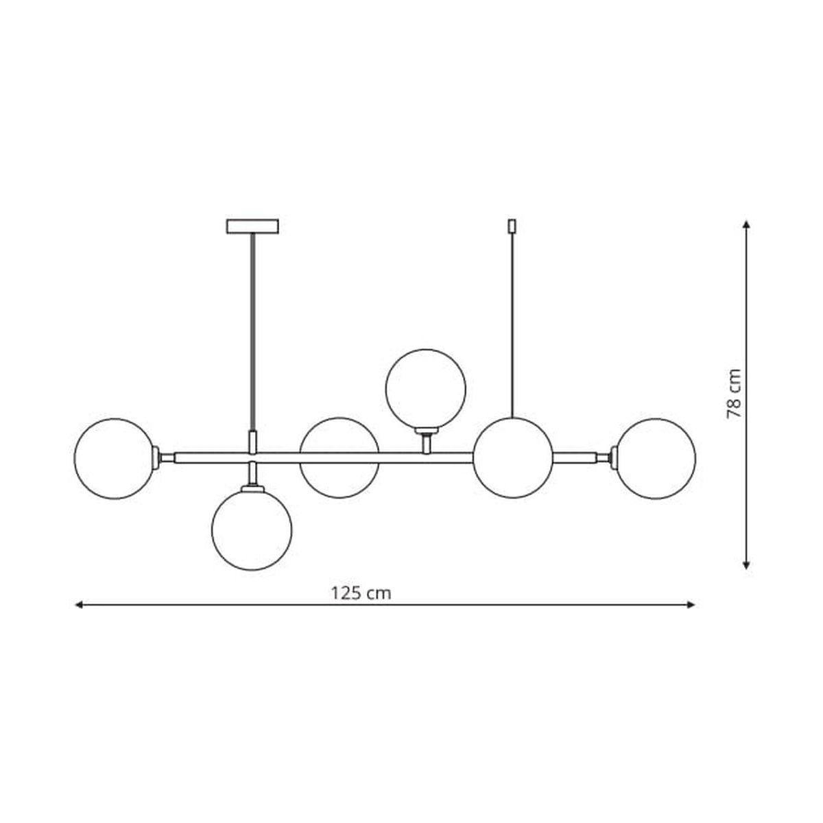 La lampada a sospensione Alisa con sfere bianche è un'ottima opzione per appartamenti, case e uffici. Ha sei paralumi in vetro a forma di sfere disposte in diverse direzioni, grazie alle quali illuminerà ogni lato della stanza. I paralumi sono bianchi e la struttura in metallo è dorata, una combinazione che renderà la lampada adatta alla maggior parte degli interni.