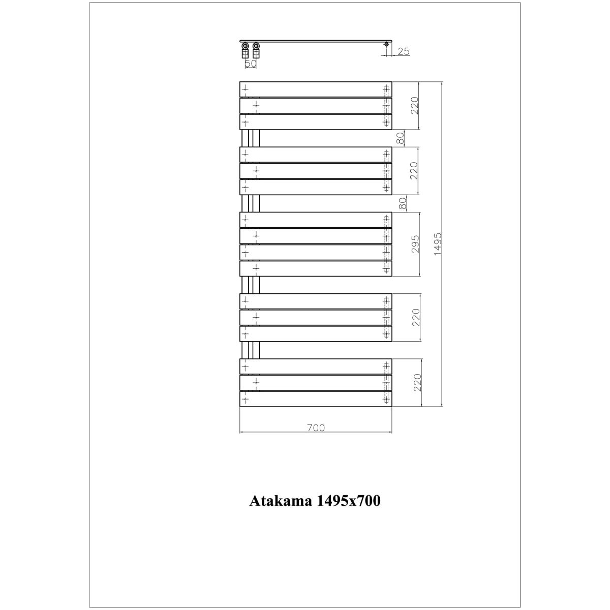 ATAKAMA ha un design unico e originale. I pannelli riscaldanti, larghi e piatti, sono disposti ritmicamente in gruppi e montati su un doppio collettore. La scelta di questo radiatore è la soluzione ideale per qualsiasi bagno moderno.