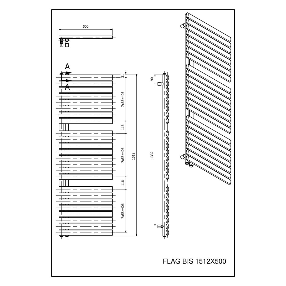 Luxrad Flag Bis radiatore da bagno decorativo 151.2x50 cm bianco FLA15125009003