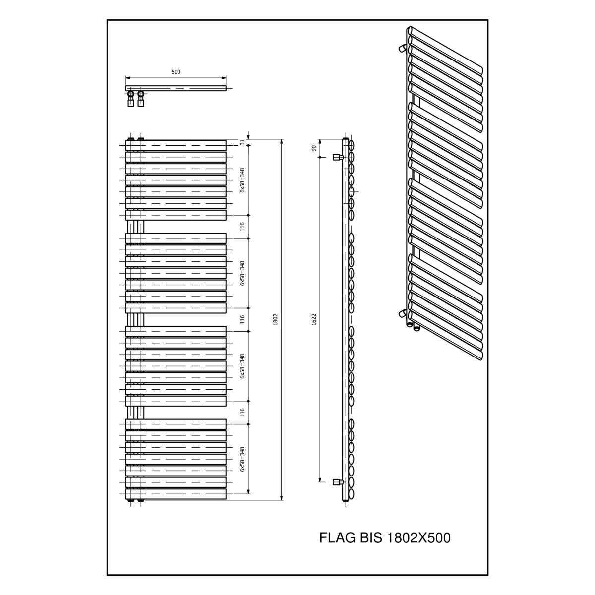 Luxrad Flag Bis radiatore da bagno decorativo 180.2x50 cm FLA18025007016