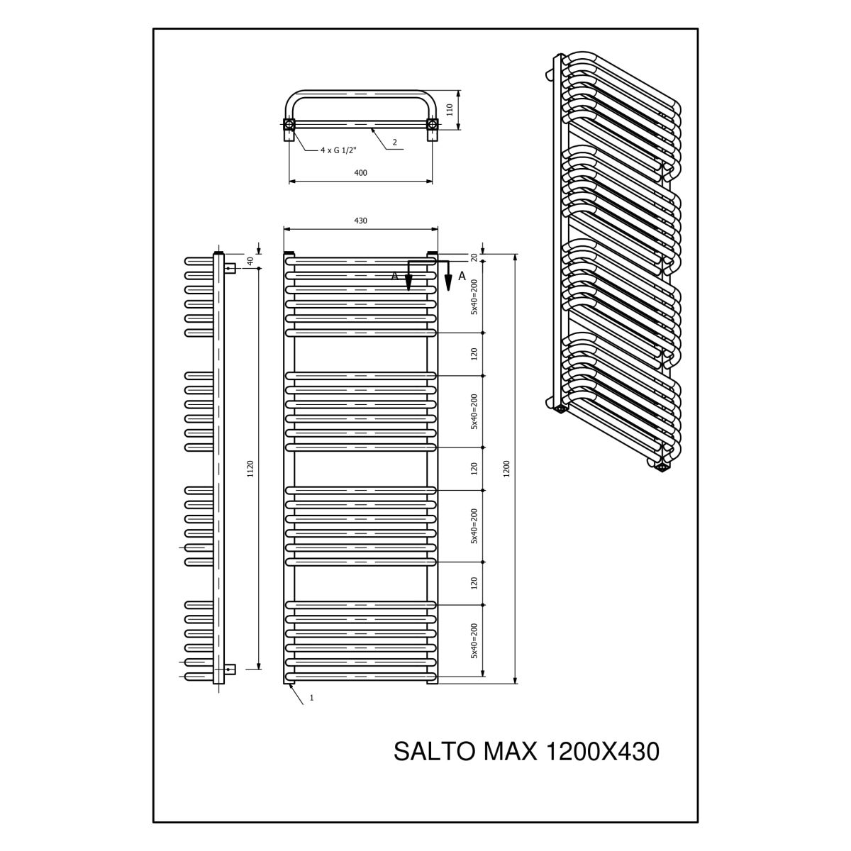 SALTO MAX è dotato di tubi riscaldanti in acciaio con curve sottili, disposti su due collettori laterali. Questa forma insolita rende il radiatore una decorazione alla moda ed elegante per il bagno. Si adatta a qualsiasi tipo di bagno, sia moderno che tradizionale.