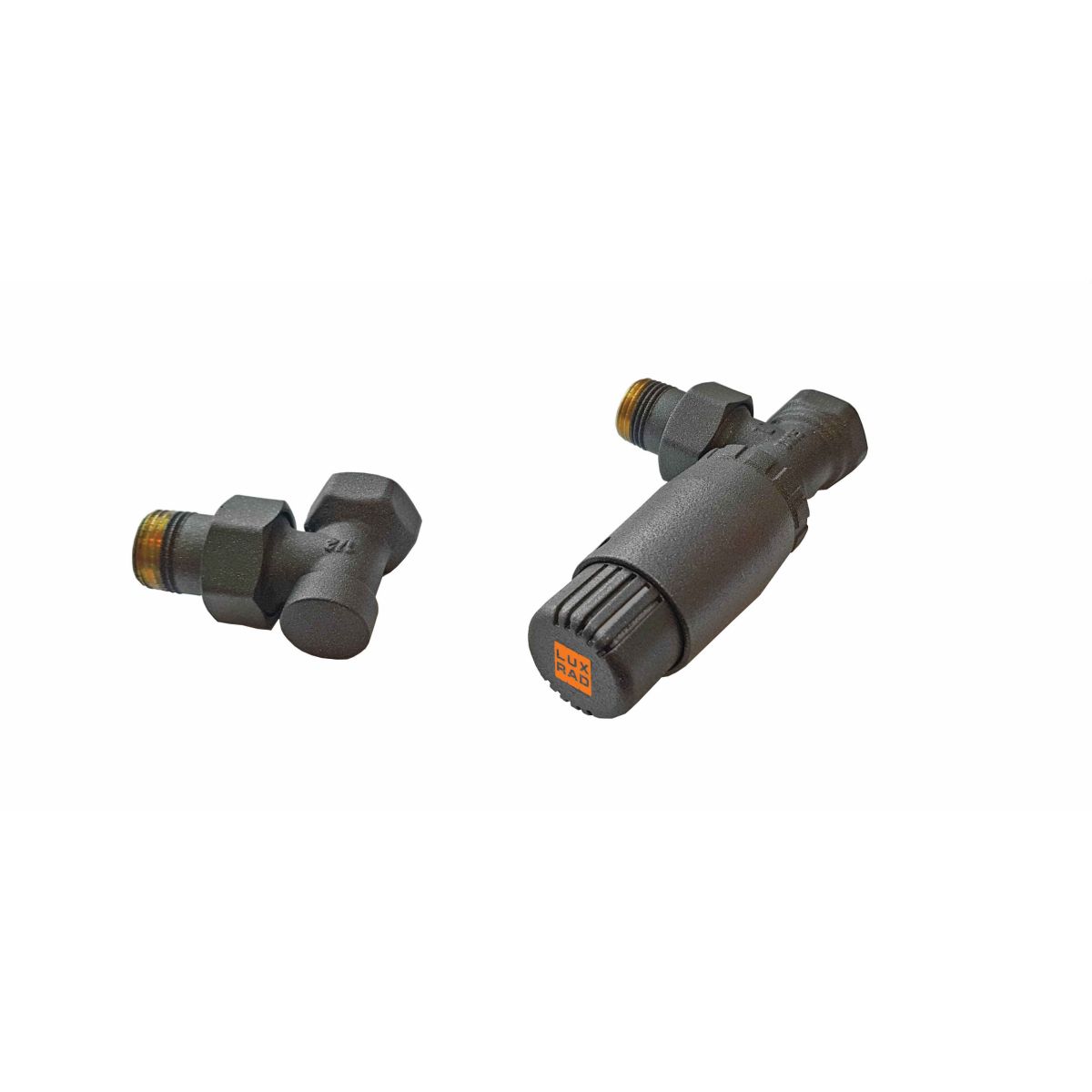 Valvola termostatica: assiale a sinistra - testa termostatica rivolta a destra