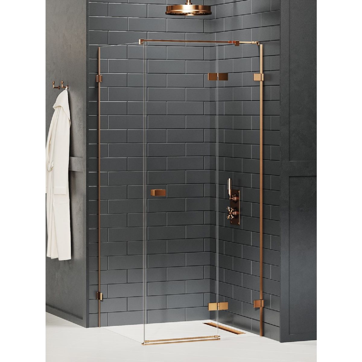New Trendy Avexa Copper Brushed box doccia 80x70 cm rettangolare rame spazzolata/vetro trasparente EXK-3575