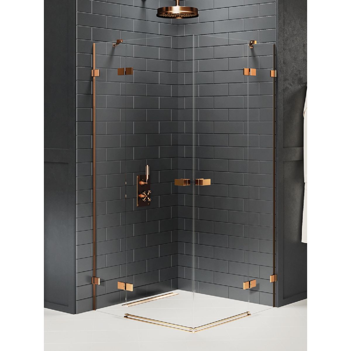 Il modello Avexa Copper Brushed presenta eleganti dettagli color rame con finitura spazzolata. La porta della doccia è caratterizzata da un vetro di sicurezza temperato di 6 mm di spessore con rivestimento protettivo Active Shield 2.0, con una grondaia nella parte inferiore della porta che scarica l'acqua dal vetro all'area della doccia. Il prodotto può essere installato con o senza piatto doccia.