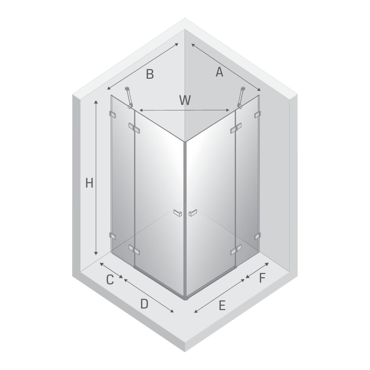 - larghezza totale della porta con parete corta (A): 119,2-120,2 cm