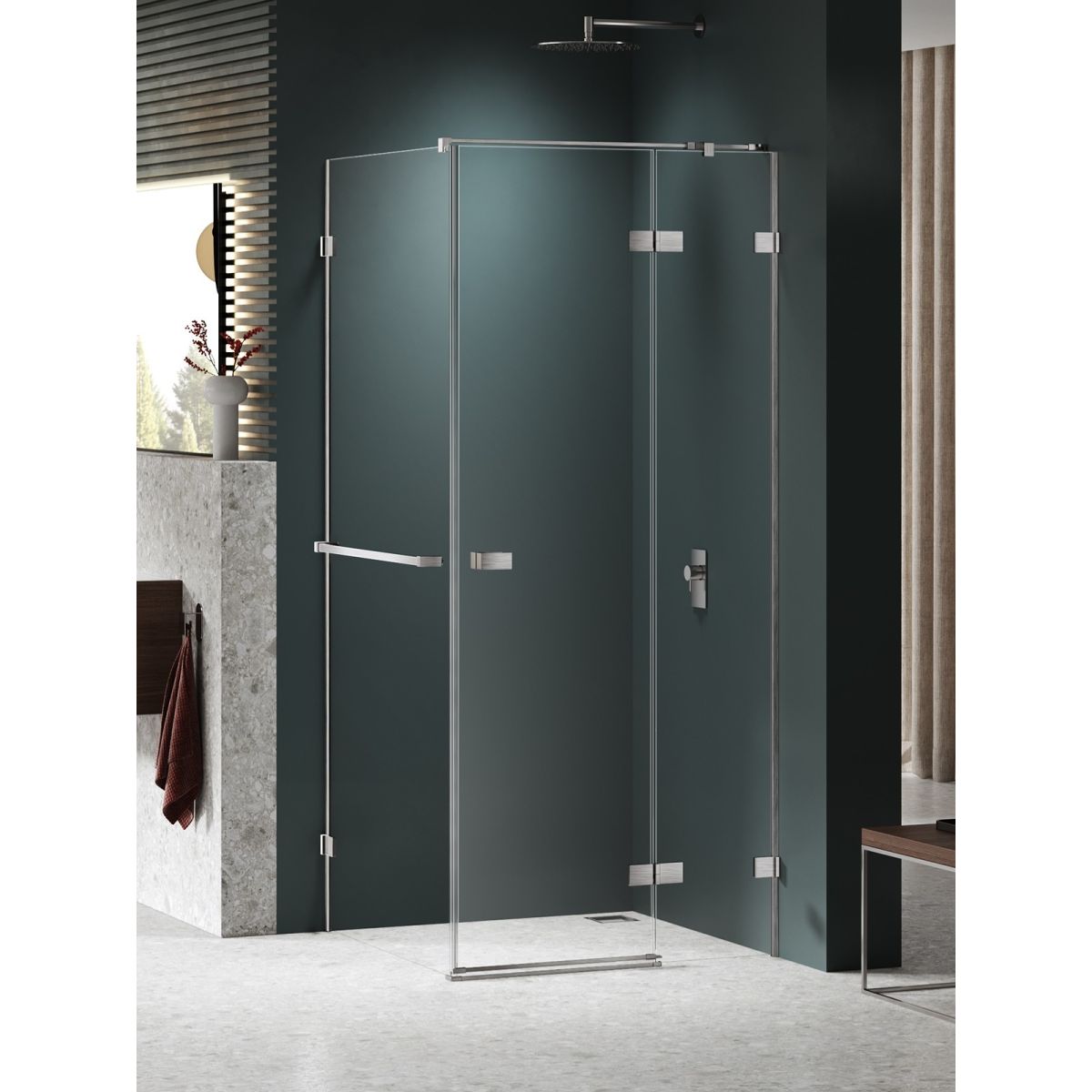 Avexa è una collezione pensata per interni moderni ed eleganti. L'efficace finitura Nickel Brushed conferisce all'insieme un carattere sottile ma allo stesso tempo deciso. I dettagli realizzati con precisione sottolineano la qualità e l'estetica della cabina. Grazie alla possibilità di personalizzazione, la linea Avexa è perfetta per gli arredi bagno più esigenti. Il modello Avexa Nickel Brushed è caratterizzato da eleganti dettagli nichelati e da una superficie spazzolata. La cabina è dotata di vetro temperato da 6 mm con rivestimento Active Shield 2.0 per una protezione aggiuntiva. La grondaia nella parte inferiore della porta convoglia l'acqua dal vetro verso lo spazio della doccia. Il prodotto può essere installato sia con che senza piatto doccia. Il profilo di soglia della cabina doccia è un elemento utile per garantire una migliore tenuta, ma il suo montaggio non è obbligatorio. Se si opta per la variante di montaggio senza profilo, è necessario utilizzare una guarnizione inferiore della porta con linguetta prolungata, in modo che non rimanga uno spazio tra la porta e il pavimento.