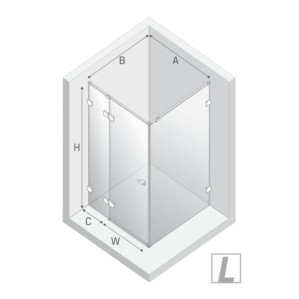 - larghezza della porta con parete corta (A): 89,7-90,7 cm