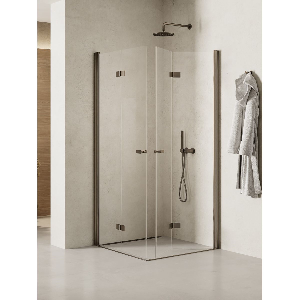 Il modello New Soleo Gunmetal Brushed presenta eleganti dettagli color canna di fucile con finitura spazzolata. Le cabine doccia hanno un vetro di sicurezza temperato di 6 mm di spessore con rivestimento protettivo Active Shield 2.0 e sono dotate di una cerniera a colonna che consente alla porta di oscillare verso l'esterno e verso l'interno. Il prodotto può essere installato con o senza piatto doccia.