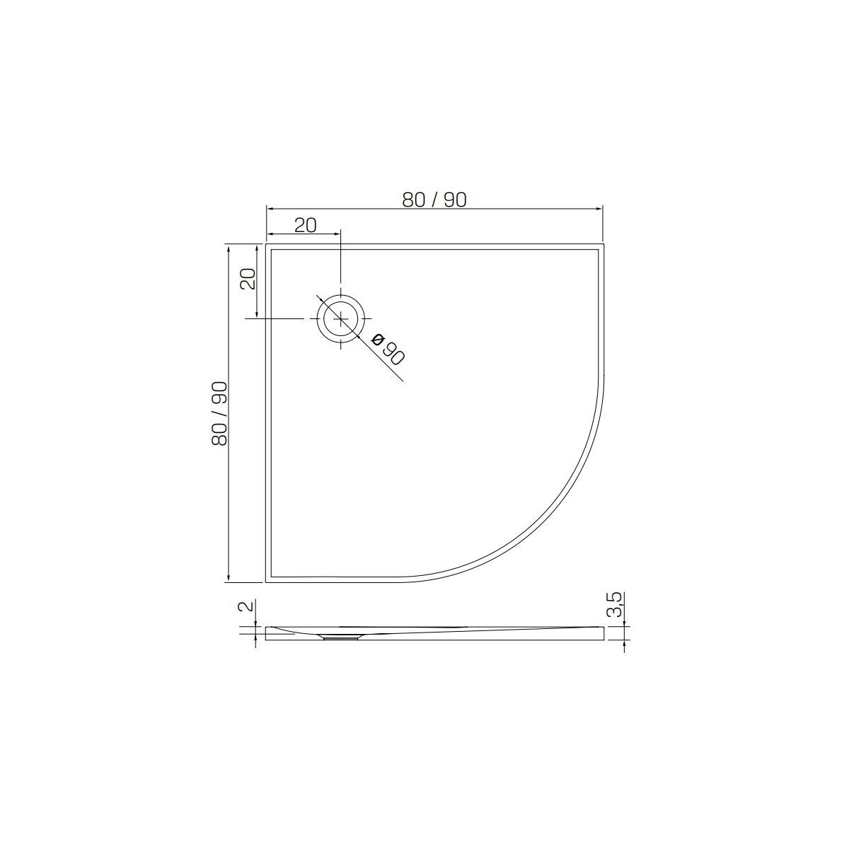 New Trendy Nex piatto doccia semicircolare 90x90 cm bianco B-0450