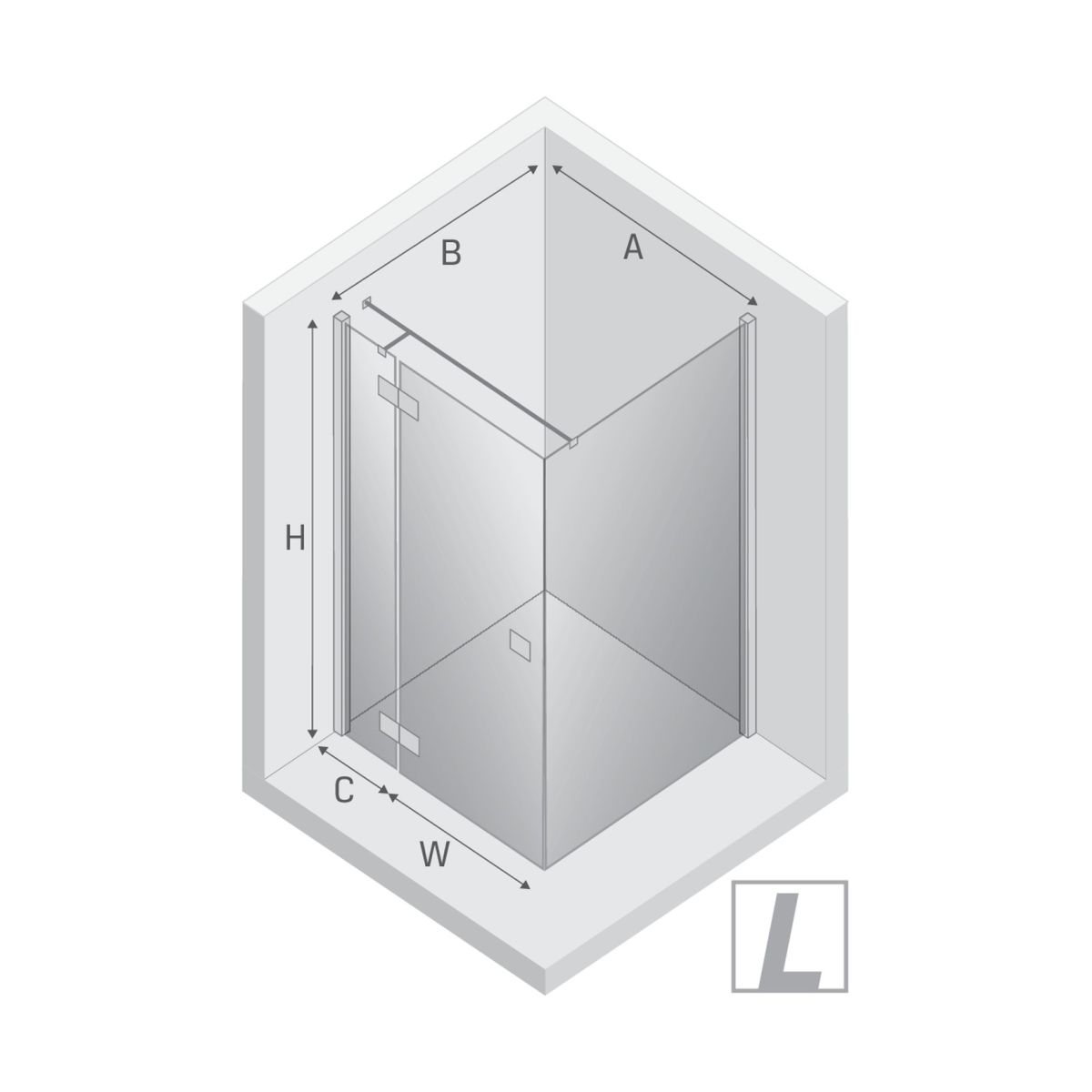 - larghezza della parete fissa (C): 44 cm