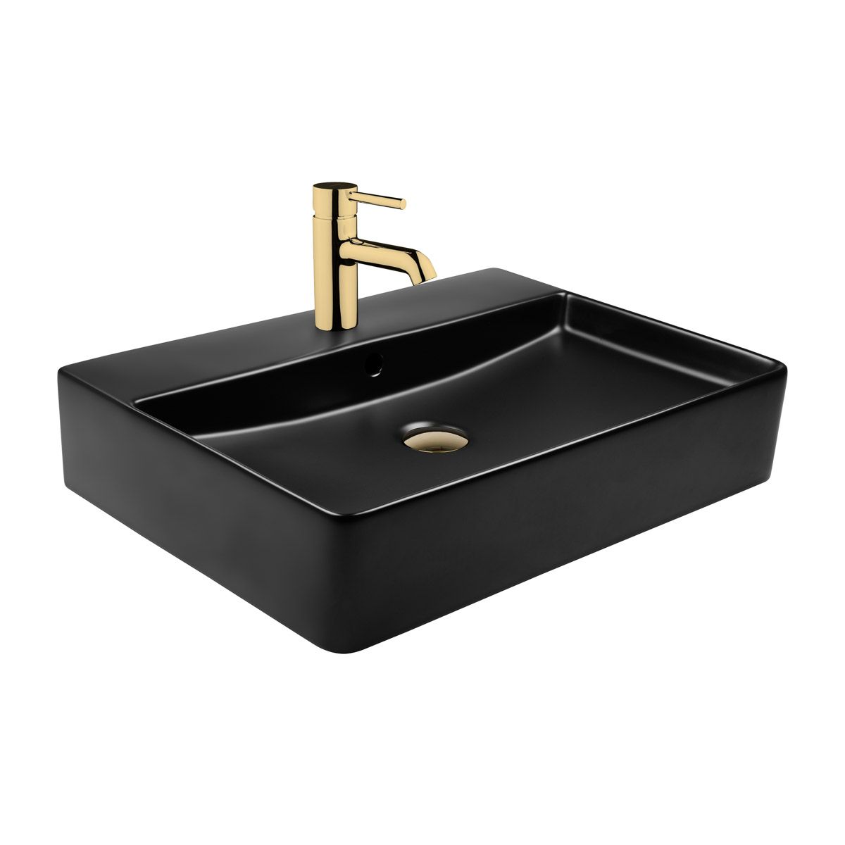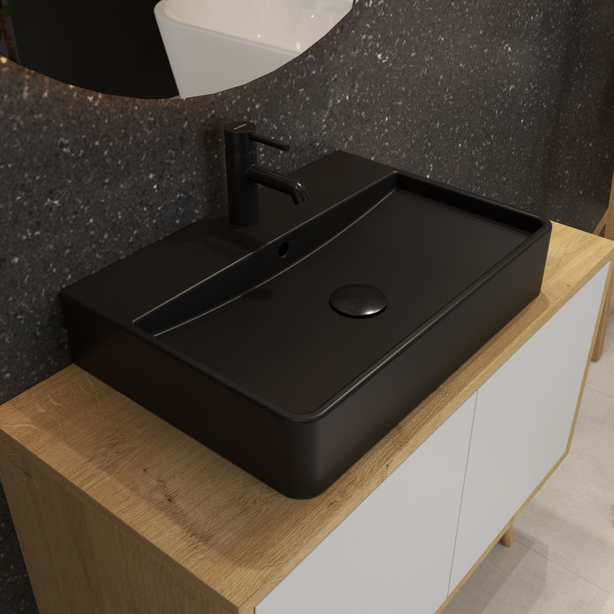 Oltens Duve lavabo 59x43.5 cm rettangolare a parete-da appoggio nero 41800300