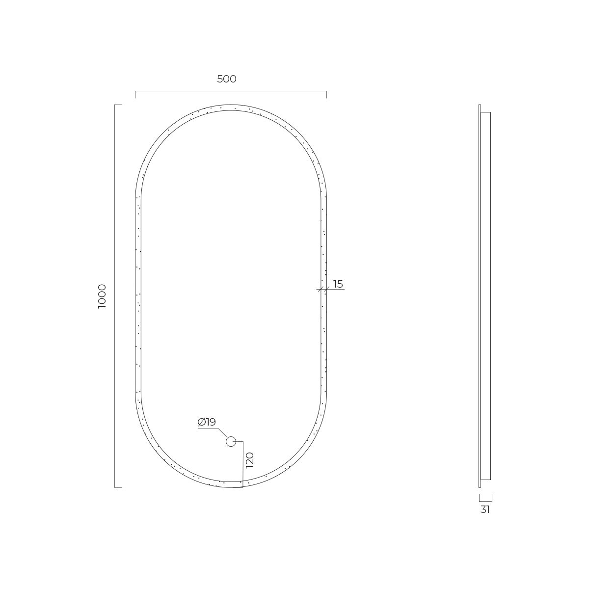 - illuminazione sotto forma di striscia larga 1,5 cm sulla parte anteriore dello specchio