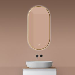 Oltens Nordlis specchio 50x100 cm ovale con illuminazione con tappetino riscaldante oro 64129810