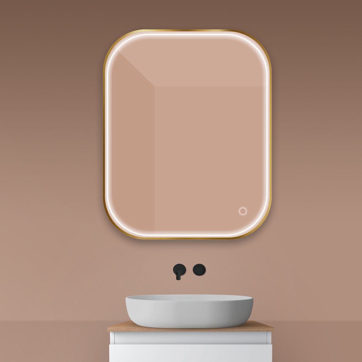Oltens Nordlis specchio 80x100 cm rettangolare con illuminazione con tappetino riscaldante oro 64124810