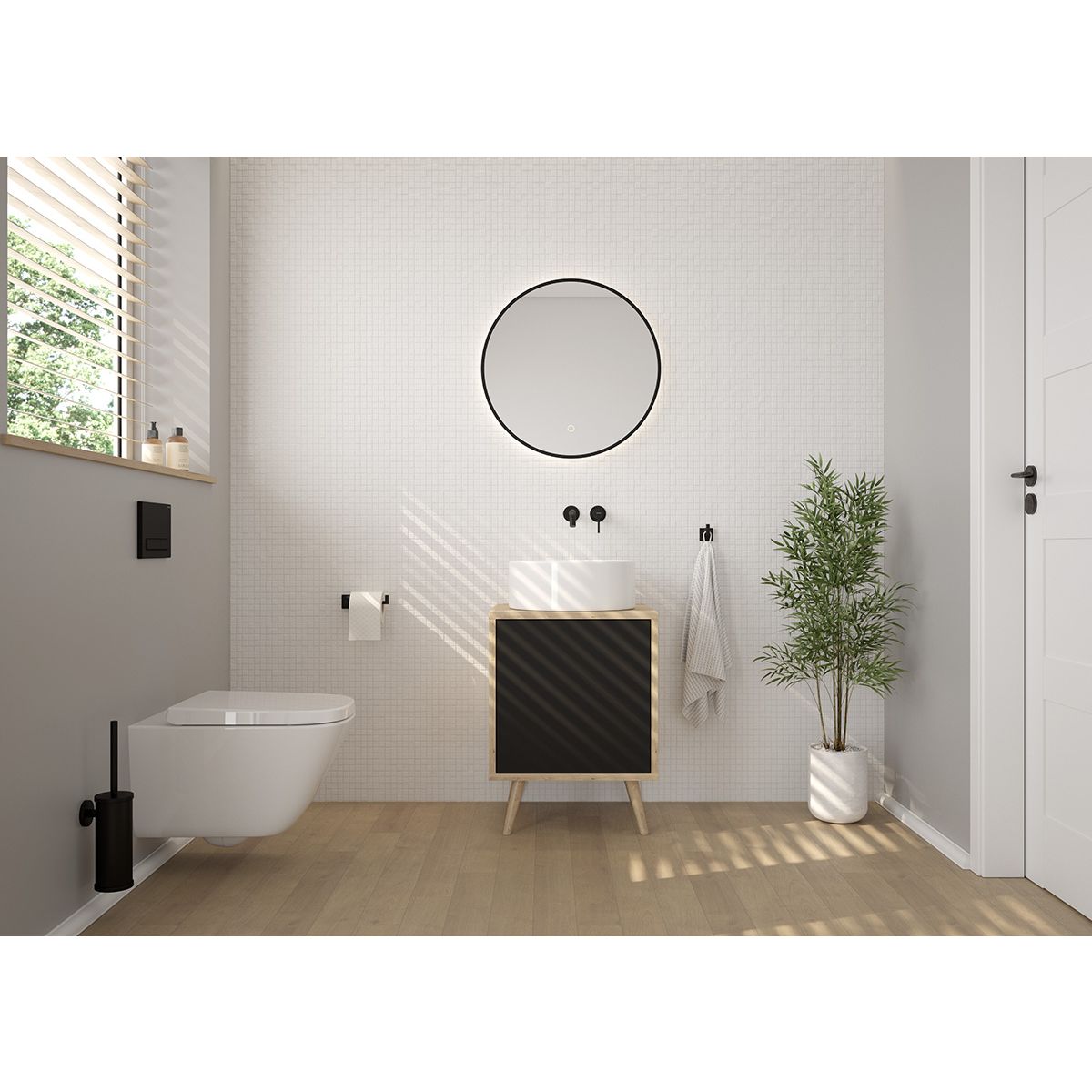 Il portarotolo nel bagno deve soddisfare sia requisiti estetici che pratici. Questi requisiti sono garantiti dal portarotolo della marca Oltens. Grazie ai materiali utilizzati e alla sua struttura, questo portarotolo è caratterizzato da una grande resistenza e da un design moderno. Il portarotolo è realizzato in ottone rivestito con uno strato di cromo e successivamente verniciato di nero, il che lo rende molto resistente, estetico ed elegante. Il fissaggio del portarotolo è nascosto nel prodotto. Il set di fissaggio al muro resistente alla corrosione è incluso.