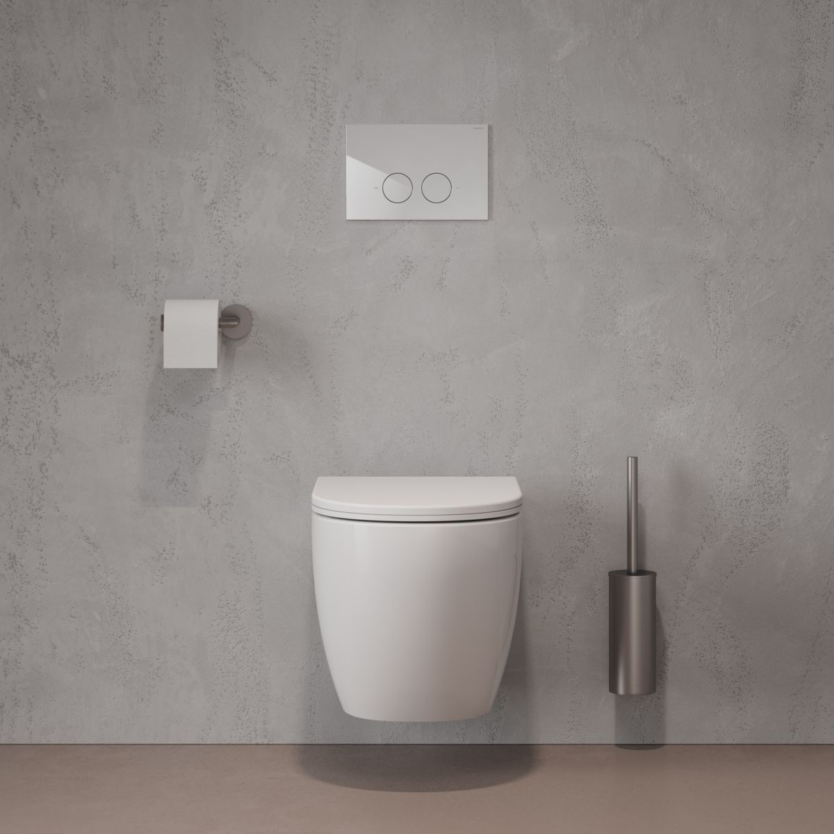 Il pulsante di risciacquo è rifinito in bianco lucido, una tonalità universale con una superficie perfettamente liscia e lucida.