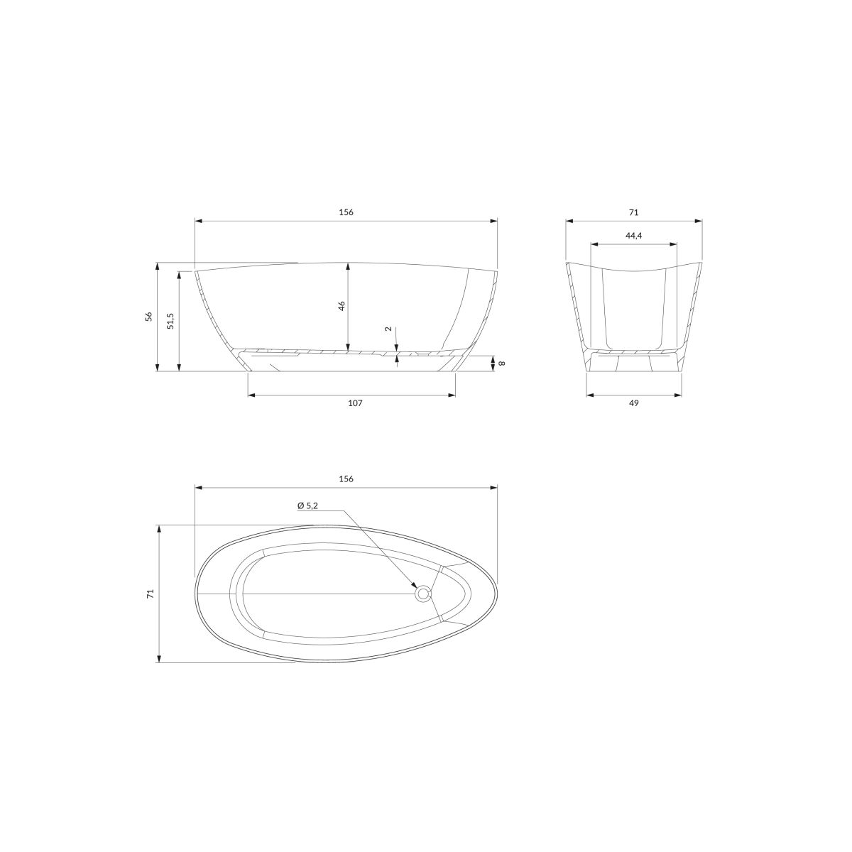 Vasca da bagno indipendente BARCELONA M+, 156 x 71 cm