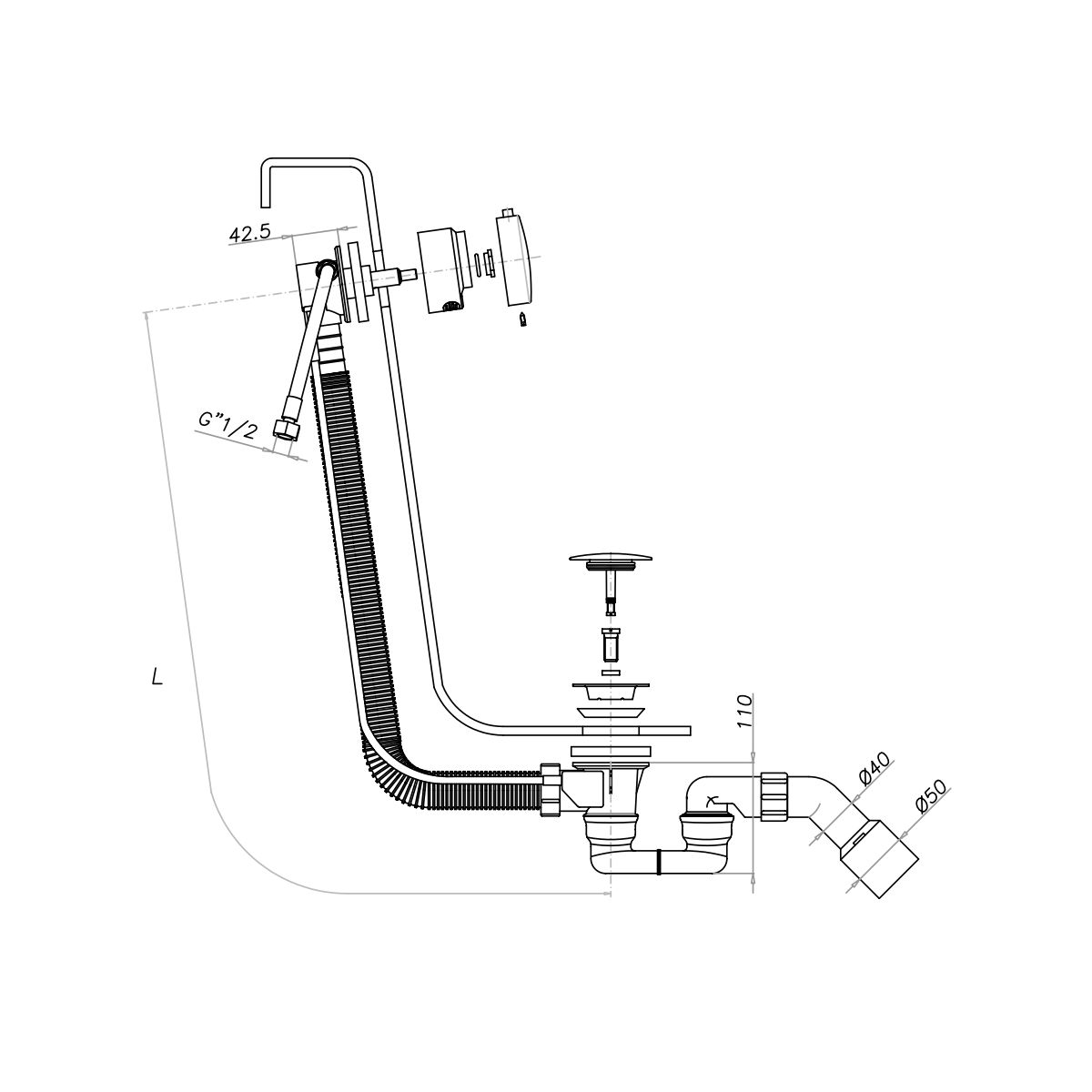 - lunghezza: 81 cm (può essere utilizzato per vasche da bagno con una distanza maggiore dello standard tra il foro di riempimento e il foro di scarico)