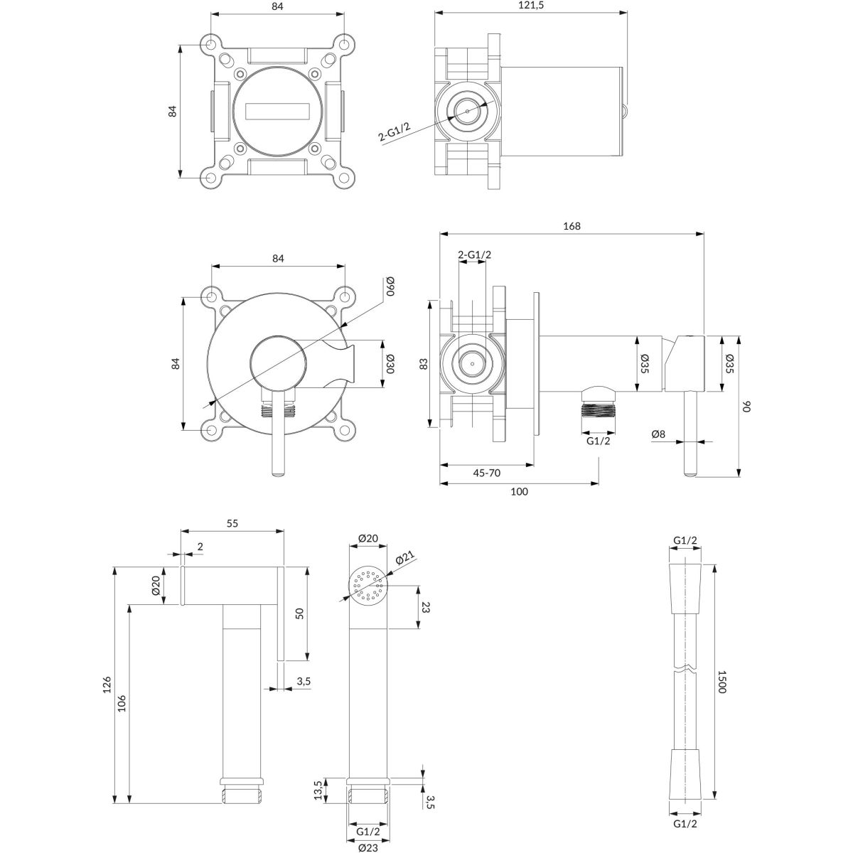 - flessibile doccia in acciaio, lunghezza: 125 cm