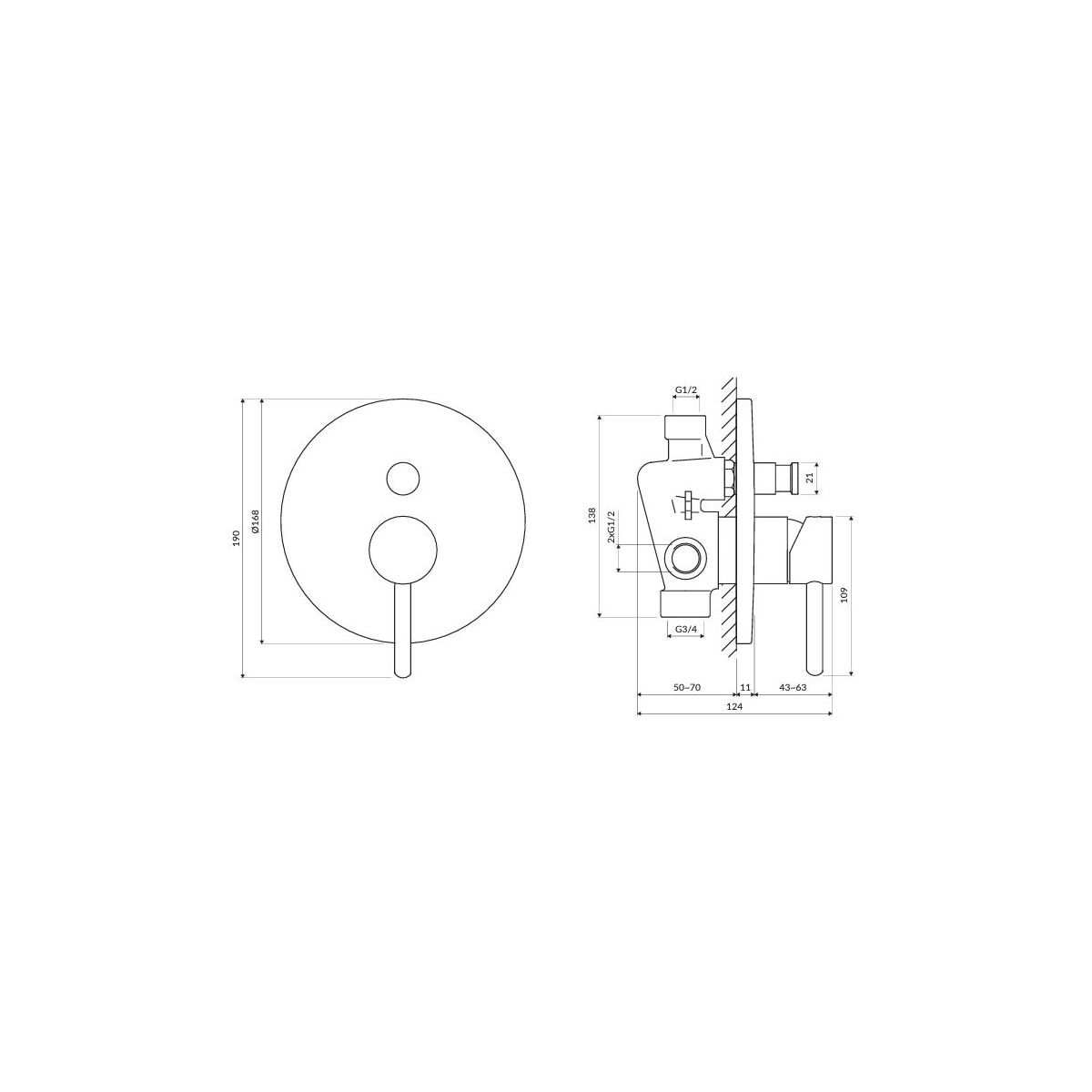 - due ingressi (per acqua calda e fredda): 1/2", due uscite per acqua miscelata: 1/2" i 3/4"
