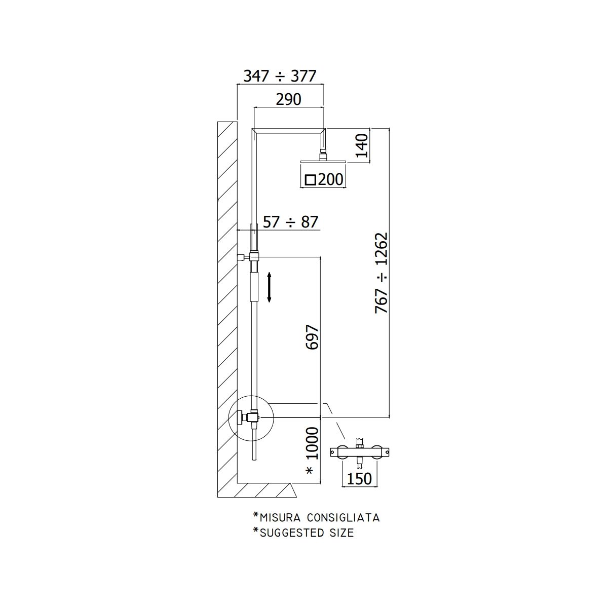 - Comprende: rubinetto con deviatore, soffione doccia, doccetta, flessibile doccia, asta doccia