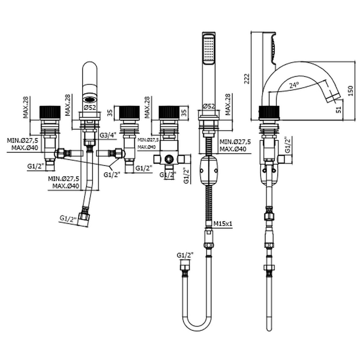 Paffoni Jo rubinetto per vasca e doccia bordo vasca cromo JO044CR