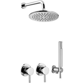 Comprende: rubinetto senza deviatore, soffione doccia, doccetta, flessibile doccia, braccio per soffione, prese d'acqua