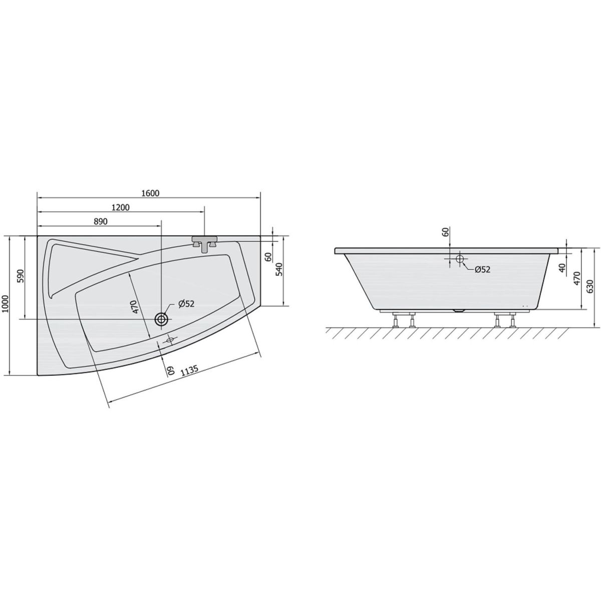 Polysan Evia vasca da bagno angolare 160x100 cm sinistra bianco 11611