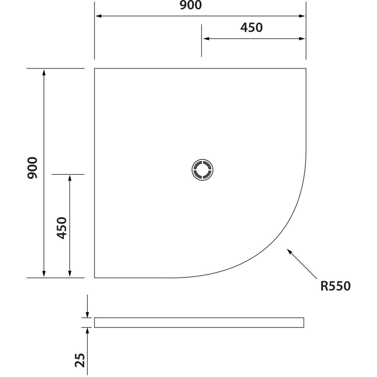 - la posizione dell'apertura per il sifone è fissa e non può essere modificata; per motivi di resistenza del piatto doccia, si consiglia di effettuare il taglio ad almeno 15 cm dal centro del sifone