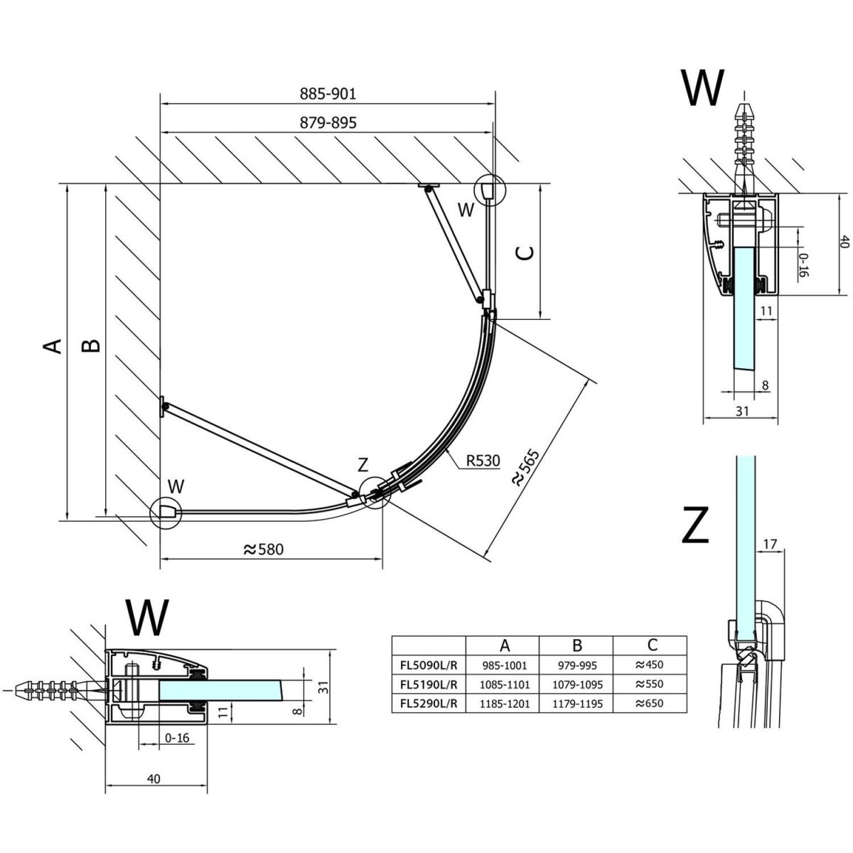 - facile installazione grazie al profilo a parete regolabile da 0 a 16 mm