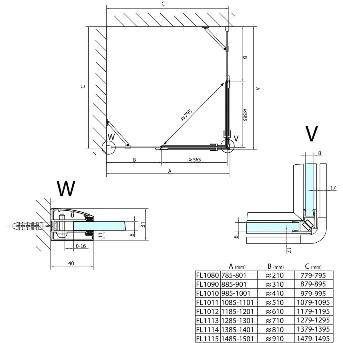 - facile installazione grazie al profilo a parete regolabile da 0 a 16 mm