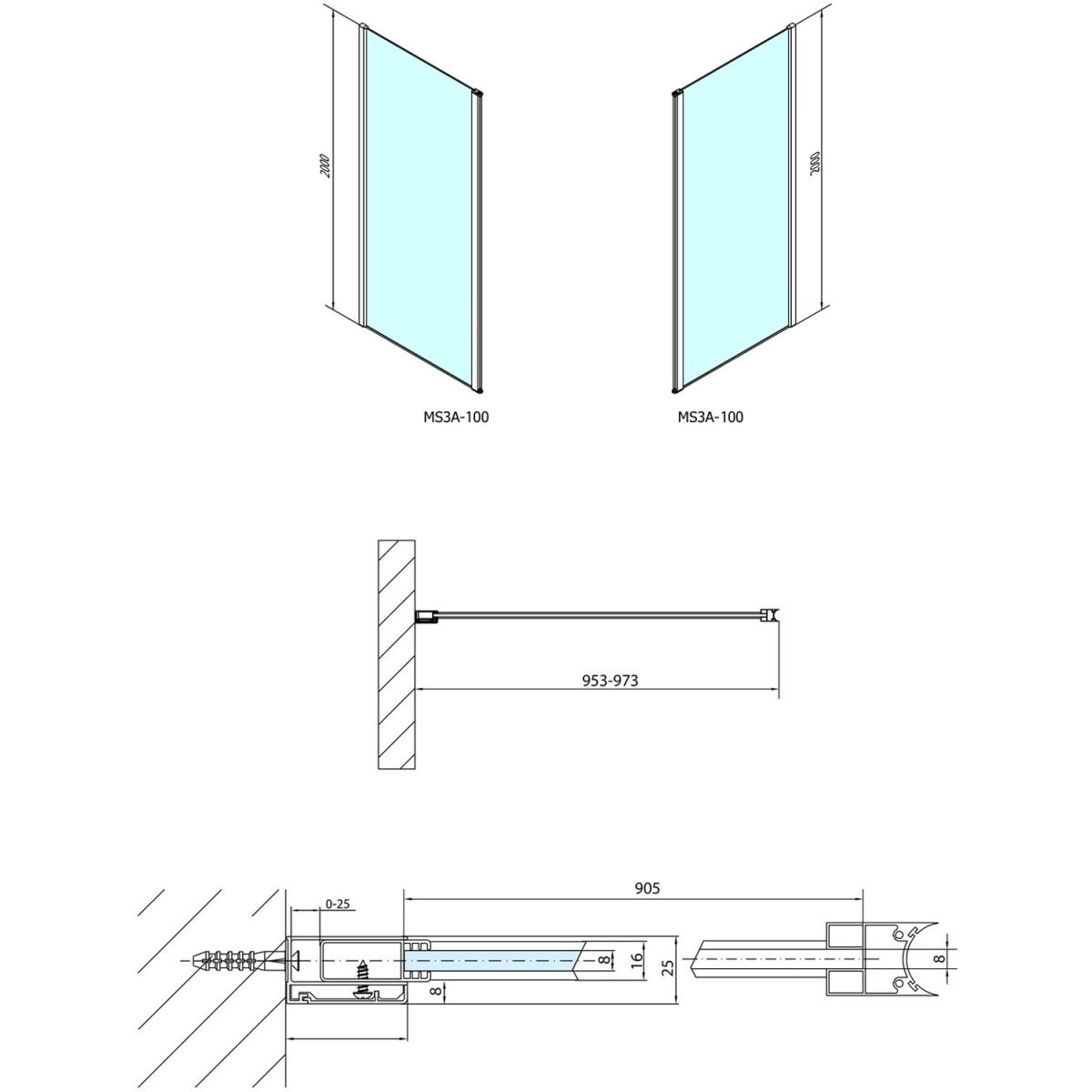 - per creare una cabina doccia a L, è necessario un pannello/parete MS3B aggiuntivo per fissare la parete (venduto separatamente)