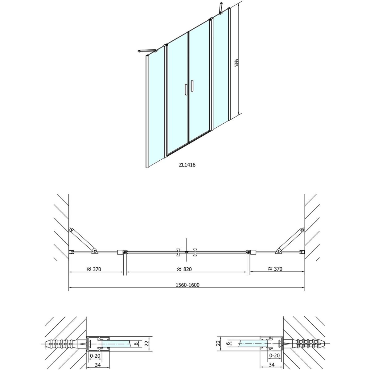 Polysan Zoom Line porta doccia 160 cm a battente cromo lucida/vetro trasparente ZL1416